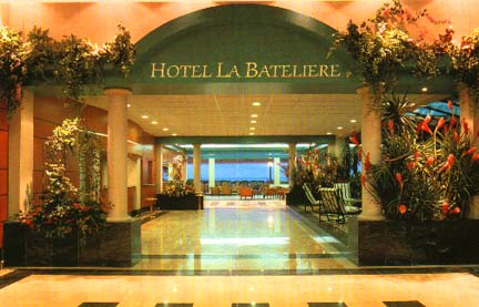 The road seemed to be interminable, but finally we reached the somewhat familiar, huge billbard anouncing 'La Batelière Hotel'. We turned left to a little entrance that reminded me of the streets in some old village of France. A little rocky drive-in, bordered in both sides by a flatly trimmed green grass contoured by some colorful tropical flowers, ended in a big parking lot in front of the lobby. We proceeded toward the squeaky shiny floor of the lobby. As we stepped in, we casually responded to the greeting of the doorman, a lightly gray-hair man in his fifty's perhaps. We made our way to the elevator, went up to the fourth floor, and into our apartment.